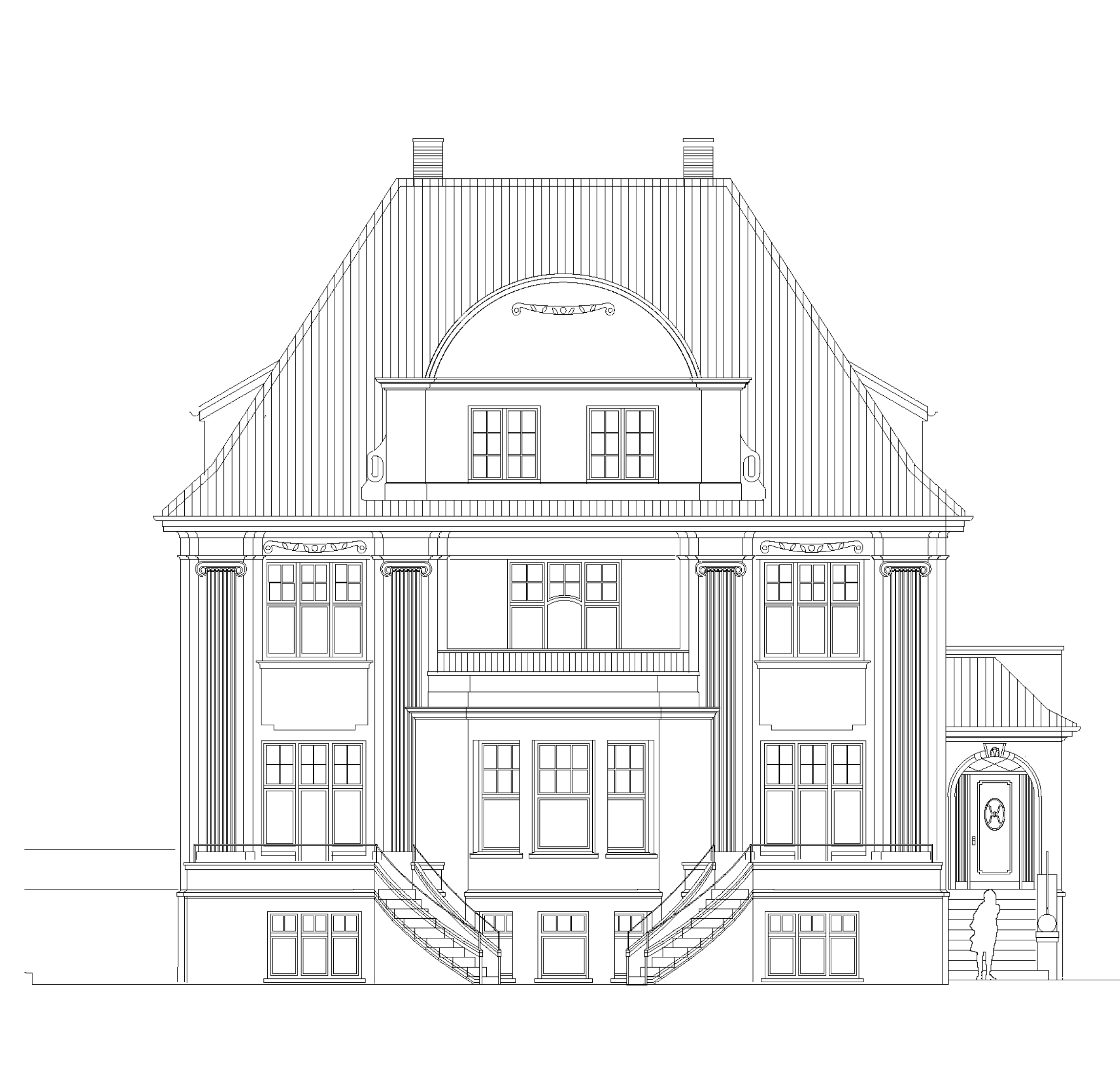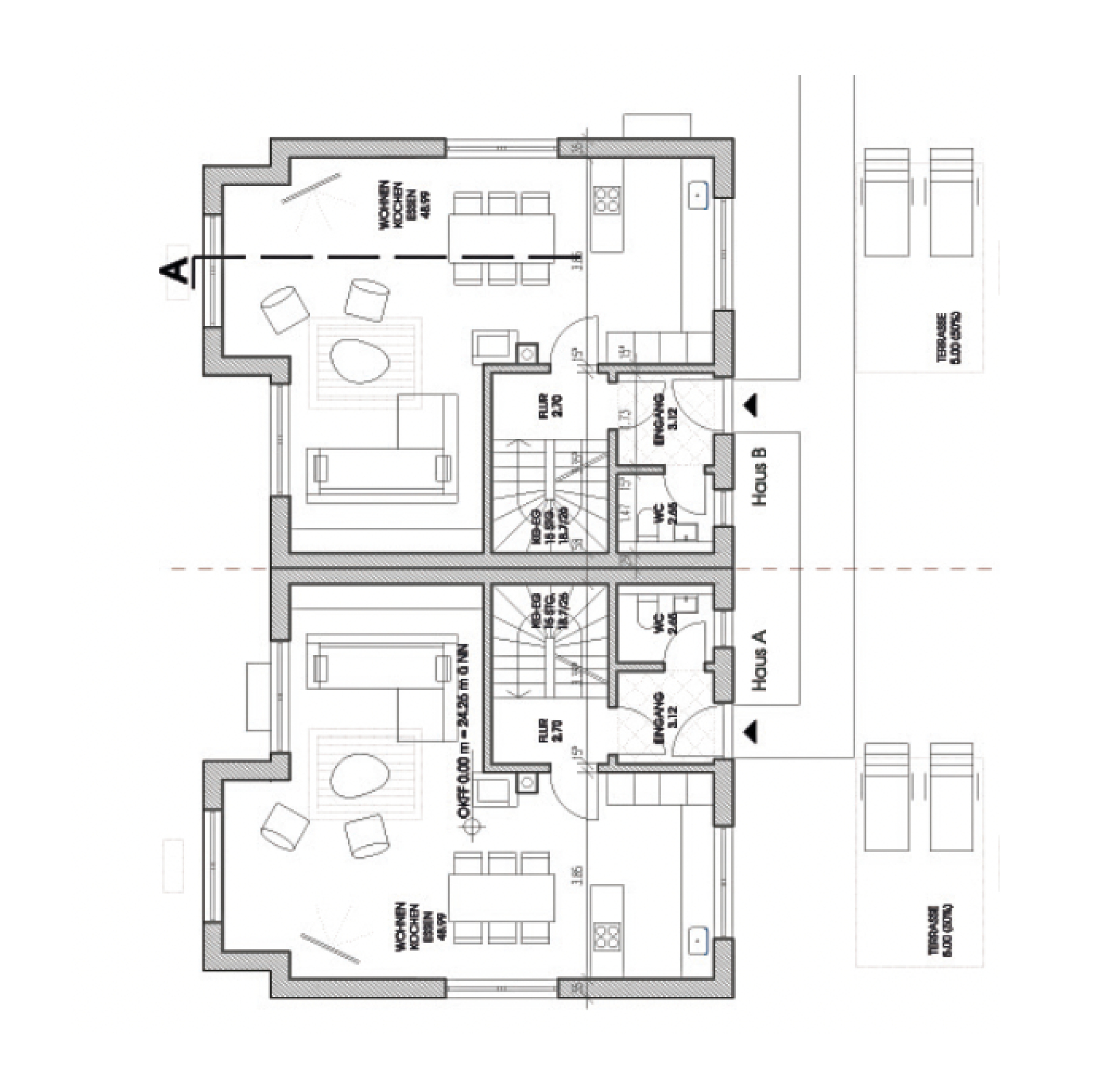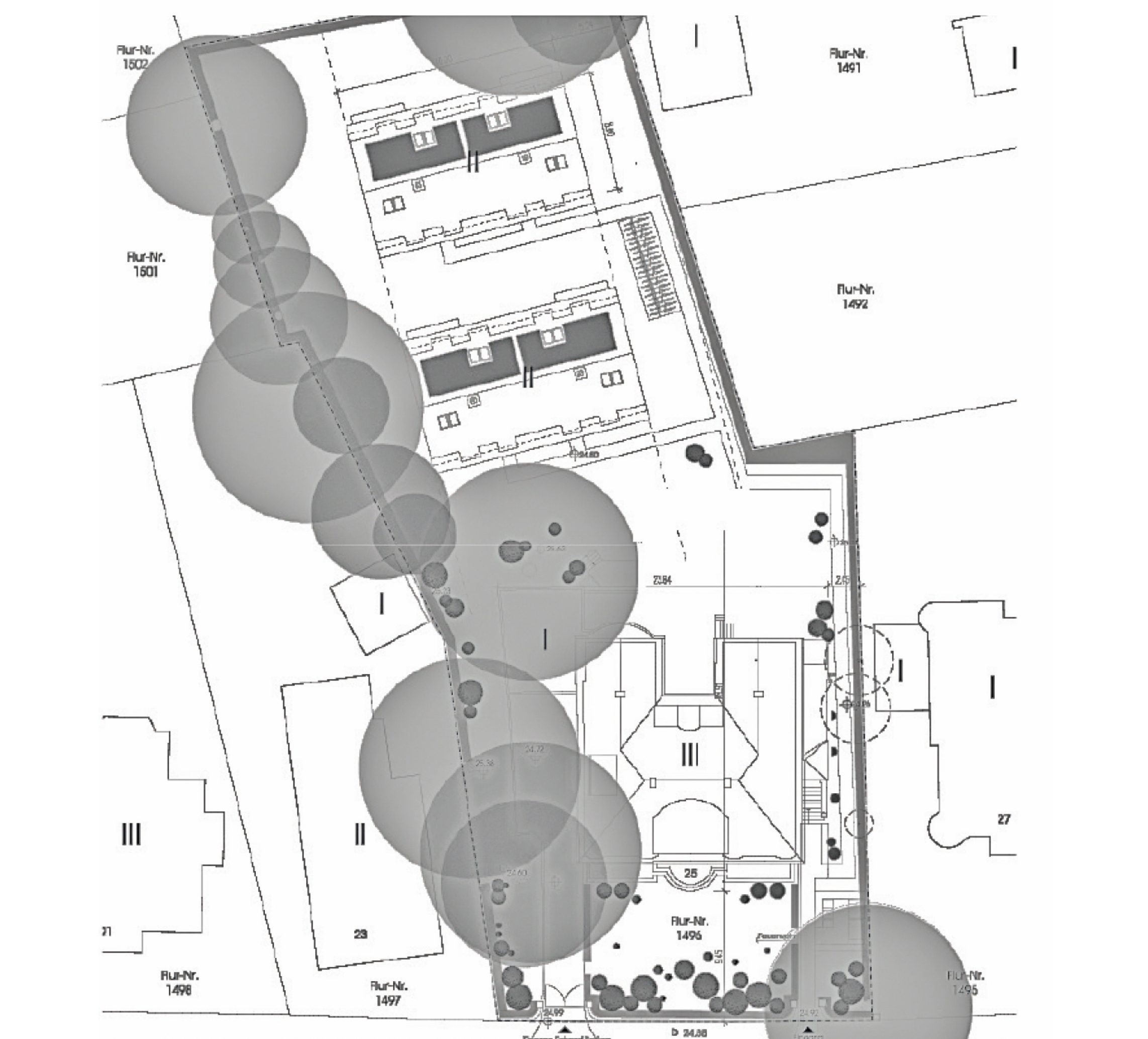 Im rückwärtigen Grundstücksbereich ist der Neubau von zwei Doppelhäusern im Villenstil in massiver Bauweise vorgesehen. Die Gebäude fügen sich in Maßstab, Kubatur und Gestaltung in die bestehende Struktur des Quartiers ein.